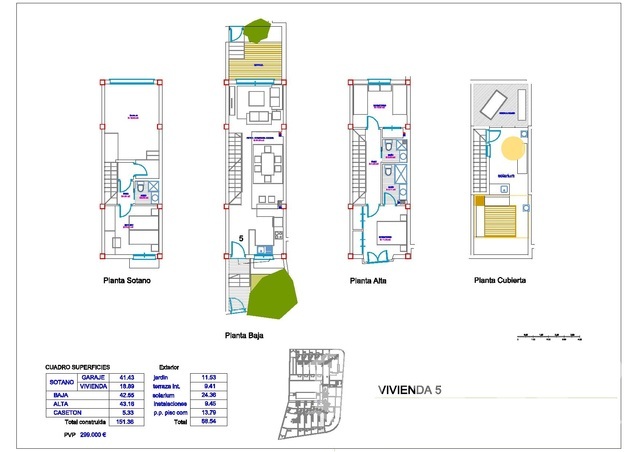 This semi detached 259.85m2 townhouse is located at the corner of the community. It has a spacious interior with doors leading to one of many terraces /gardens surrounding the entire house which is 169.85m2 of outdoor space.